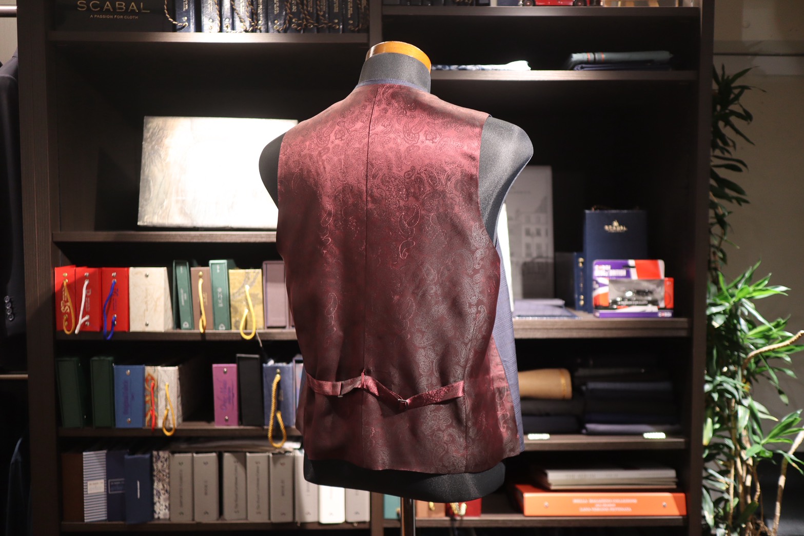 ベストです。背中はボルドーのペイズリーで遊び心を取り入れました。