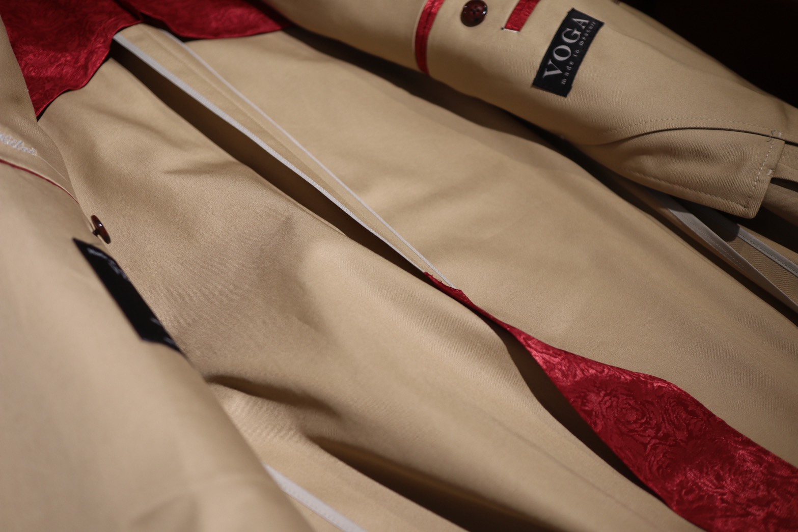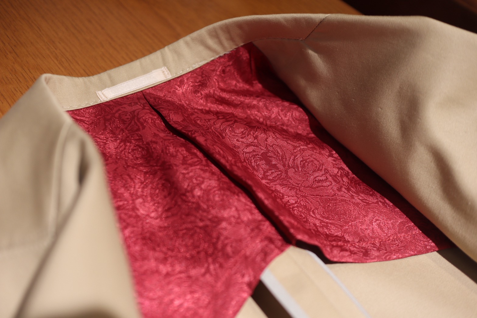 NAPOLI LINE のためほぼ裏地はありませんが、一部にこのようなレッドローズのジャガード生地を張ることでアクセントにしております
