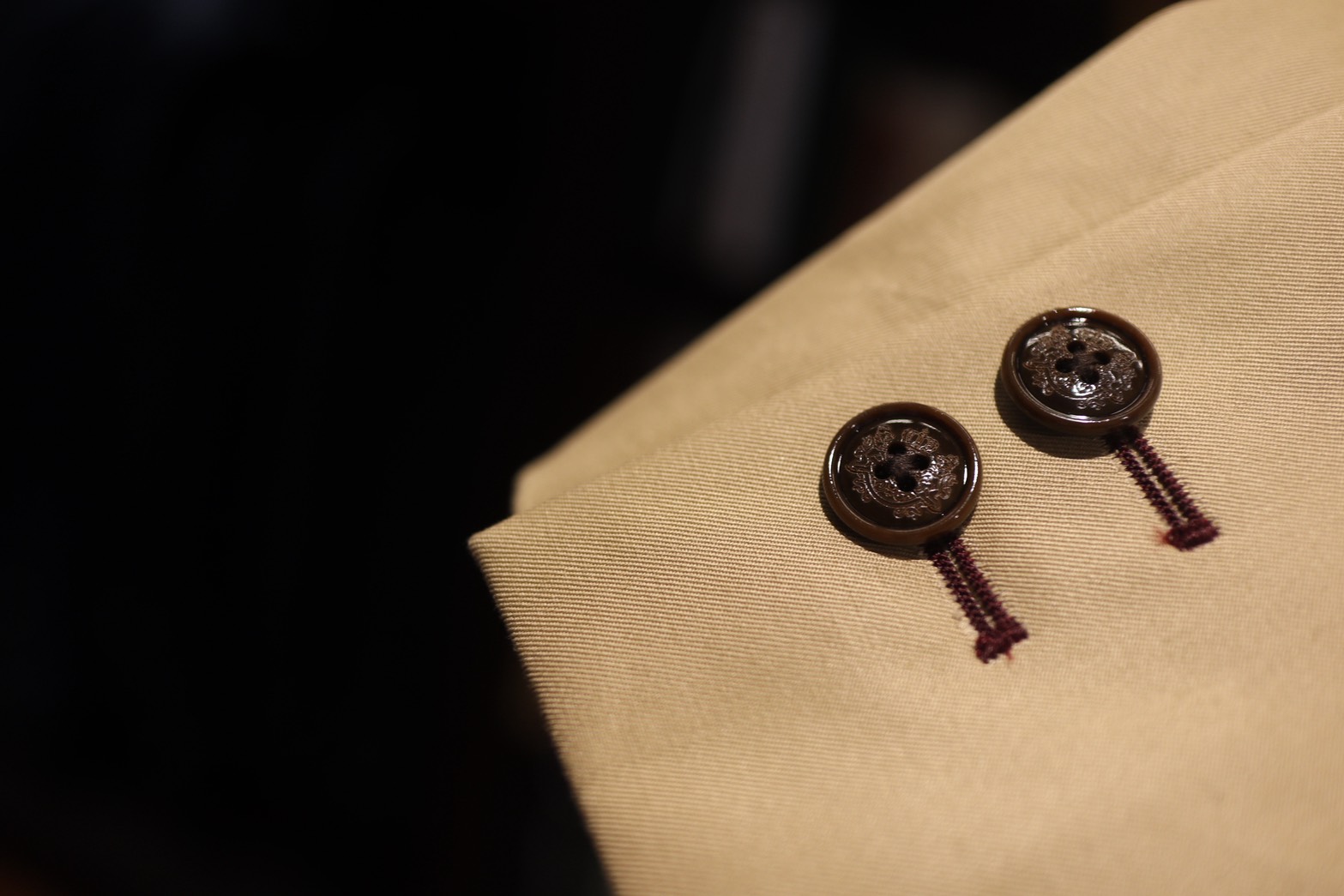 ボタンは茶色基調の紋入りボタンをチョイス